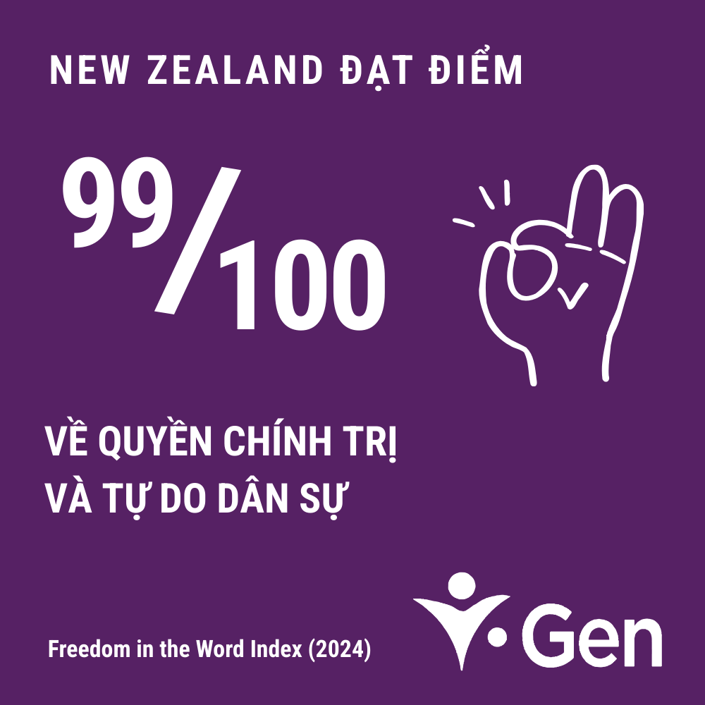 New Zealand đạt 99/100 về quyền chính trị và tự do dân sự - bảo vệ quyền lợi cá nhân tối đa